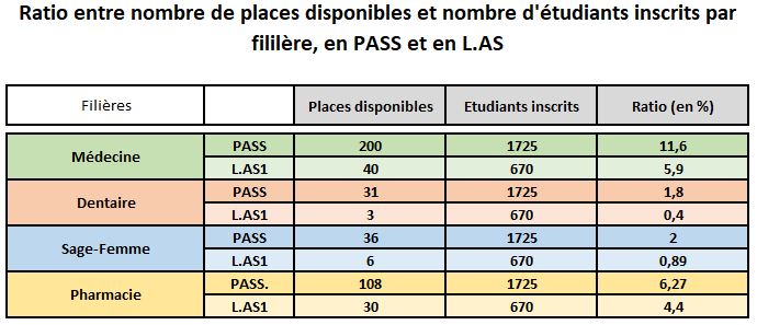 Il peut aussi être intéressant de comparer le nombre de places disponibles par rapport au nombre de candidats en PASS et en L.AS1.