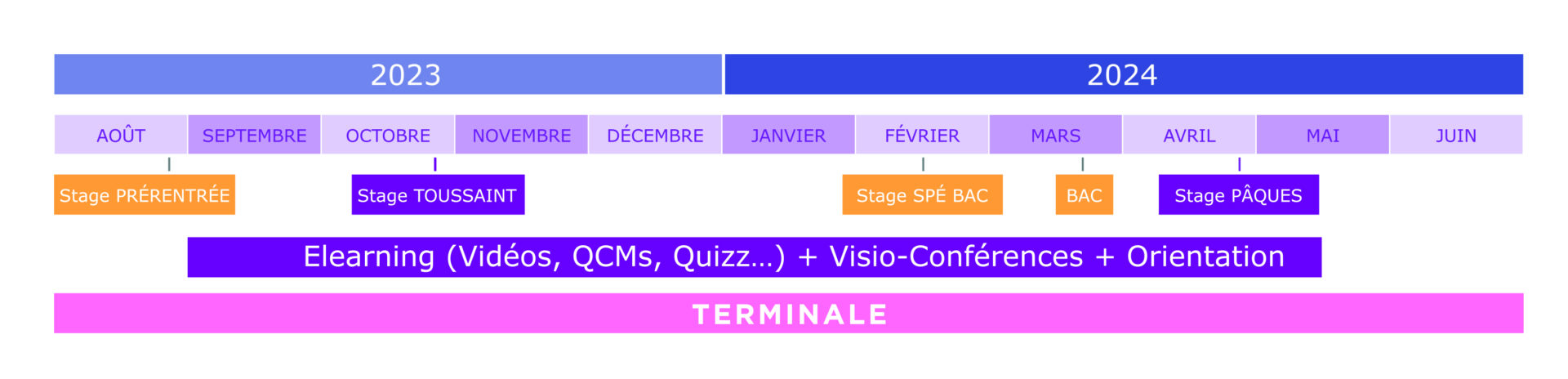 1- Le pack Perf Terminale : pour commencer à anticiper l’année de PASS en Terminale (en violet sur la frise)